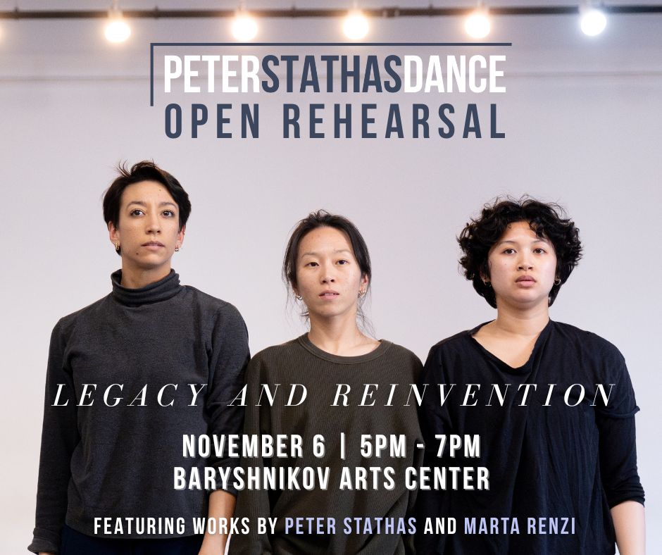 Peter Stathas Dance invites the NYC community to a free open rehearsal of Legacy & Reinvention to experience behind-the-scenes reconstructions in progress as choreographer Peter Stathas and guest artist Marta Renzi revisit and reimagine dances first created in 1983.